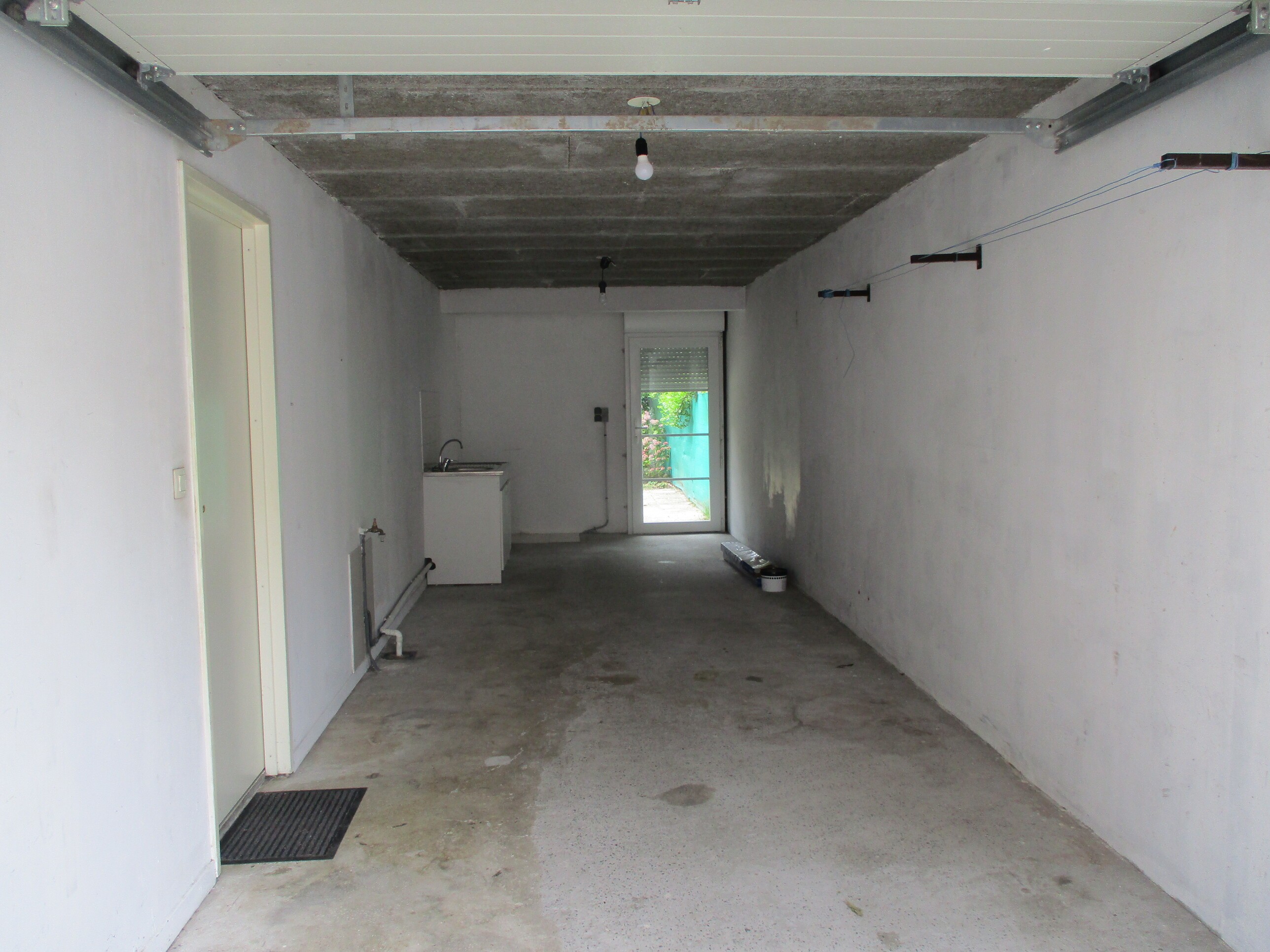 rdc : entrée, wc, chambre (bureau) sur jardin, garage 2 voitures.